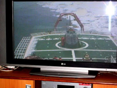 Viagem de retorno até à Base chilena cerca de 3 horas, por vezes abrindo caminho no gelo, durante a qual tivemos o prazer de compartilhar um belo almoço, com vinho, é evidente, e novamente o desembarque foi feito de helicóptero. Bem melhor do que na ida!