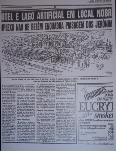 Quando mudei a SE do Terreiro do Paço para o edifício do INIP em Algés passava frequentemente em frente dos Jerónimos e assim dei conta de um terreno cheio de máquinas de construção civil que, se não me falha a memória, era um parque de estacionamento relacionado com as estradas, o que parecia ser um péssimo aproveitamento de um dos lados da maior praça do País.