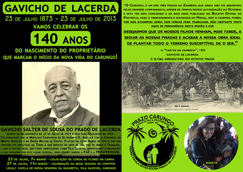 E deste jeito bíblico, embora com mais modéstia na indicação das idades – largamente centenárias as dos patriarcas do Génesis – se aponta a via paterna da família Lacerda, com assento no “patriarca” ilustre e de brasão que, nas suas “Cartas da Zambézia” forneceu tantos dados sobre a terra de que a minha amiga, nove décadas depois - o livro foi publicado em 1923, em 2ª edição - fala sempre com emoção e entusiasmo – os mesmos que impeliram o “avô Gavicho” da designação do seu neto Rui, a defender essa terra, para onde foi “trocando a luzente fardeta de cavalaria pela indumentária simples de colono”, “a moirejar sem descanso até que, porfiando e lutando, conseguiu tornar-se arrendatário de um “prazo” que, ao presente, lhe assegura um rendimento algumas vezes multiplicado pelo soldo que, decerto, lhe caberia no posto de comandante de um batalhão, se tivesse seguido a carreira militar.”