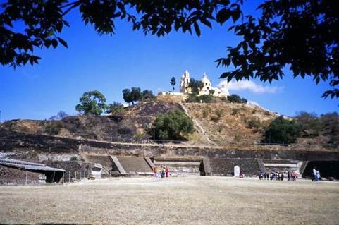Seguindo a tradição de construir uma igreja sobre o local onde existisse qualquer templo de adoração “pagã”, os espanhóis construiram a igreja da Virgen de los Remedios no cume da pirâmide onde antes havia um templo dos nativos. (Aliás pelo mundo tem-se assistido a transformar mesquitas em igrejas, igrejas em mesquitas, igrejas do rito A para o rito B, sinagogas em... etc.)