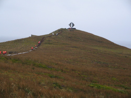 Os castelhanófonos chamam-lhe Cabo de Hornos porque os ingleses lhe chamaram Horn traduzindo livremente do inicial Hoorn, cidade natal dos holandeses que por ali navegaram no séc. XVIII. Etimologias à parte, subimos 185 degraus numa escada bem íngreme e lá no topo caminhámos até ao monumento do albatroz que marca o ponto mais austral de tudo o que seja sítio, antes da Antártida propriamente dita. Ninguém teve coragem de se queixar em voz alta quando vimos um companheiro de viagem nas suas 89 Primaveras a fazer-se à escada como se estivesse a tomar um cafezinho. Mas em voz baixa, sabe Deus o que cada um disse.