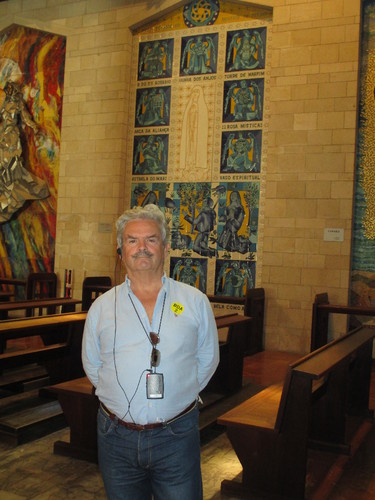 Era meio-dia quando entrámos na Basílica da Anunciação e tivemos a sorte de ter que esperar um pouco para que na Gruta os monges franciscanos acolitassem um Padre na oração do Angelus. Muitos sentimentos emotivos no nosso grupo e nos peregrinos que nos rodeavam, desta vez japoneses. Também ali a arquitectura (moderna) envolvente do lugar sagrado tende a desviar a atenção do fundamental. Mas aqui a decoração é muito mais sóbria do que em Belém ou Jerusalém onde os ortodoxos dão largas ao seu sentido estético.