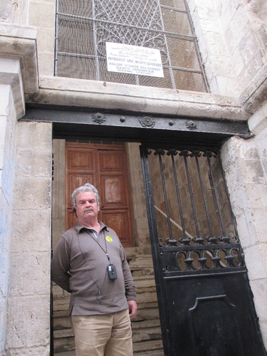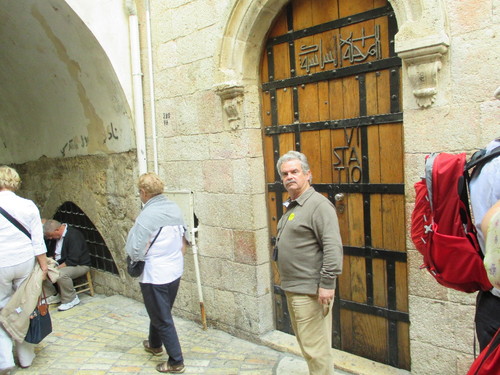 E porque éramos um grupo nada jovem, o nosso guia «José» conduziu-nos pela Via Dolorosa em sentido descendente pois era evidente que não teríamos aguentado subi-la. Cruzámo-nos contudo com alguns grupos que quase em marcha forçada cantavam e rezavam (em várias línguas) sem mostrarem qualquer cansaço ou hesitação. Não há dúvida, a fé consegue prodígios. Mas foi nesse ambiente de grande religiosidade que passámos por uma loja dum muçulmano que tinha música pop em alta berraria parecendo fazê-lo apenas para perturbar peregrinos duma religião que não a sua. Mais um ordinário que me indignou. Felizmente, os peregrinos ignoraram a estupidez e prosseguiram as suas procissões.