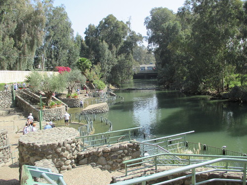 Yardenit, o nosso primeiro destino, localiza-se junto das comportas que controlam os fluxos de água do Mar da Galileia para o Jordão e constitui um local aprazível onde os peregrinos se podem purificar nas águas santas do rio. É sabido que S. João baptizou Cristo num local bem mais a sul, frente a Jericó, mas essa era uma zona perigosa durante a guerra israelo-árabe e foi escolhido este local como bem mais seguro para os peregrinos que reconhecem santidade a todo o percurso do Jordão. Aliás, foi na região circundante do Mar da Galileia que Jesus encontrou os seus primeiros discípulos (Pedro, André, João, Mateus e Tiago, o Maior) e onde realizou diversos milagres (curando a sogra de S. Pedro, ressuscitando uma criança que tinha sido dada como morta, curando um leproso, devolvendo a saúde ao servente de um centurião). Ou seja, o local é muito apropriado para os efeitos da purificação a que o baptismo se refere. E se antes esta purificação era também física, hoje ela é eminentemente espiritual. A quantidade de peregrinos justifica bem a dimensão das instalações de apoio onde voltei a encontrar um numeroso grupo de africanos que desta feita eram cristãos do Gana e não judeus do Biafra como os que encontrei nas redondezas do Monte Sião. Nós, os do nosso autocarro, só molhámos os pés mas os africanos foram aos vestiários onde se despiram e envergaram umas togas brancas com as quais entraram no rio até ficarem totalmente submersos. Sem qualquer cerimónia específica, sempre diziam uma prece (para mim ininteligível pois que me pareceu numa língua minha desconhecida) e manifestavam sonora satisfação pela purificação que sentiam. Deu gosto ver. E voltei a pensar em como são felizes os que têm fé.